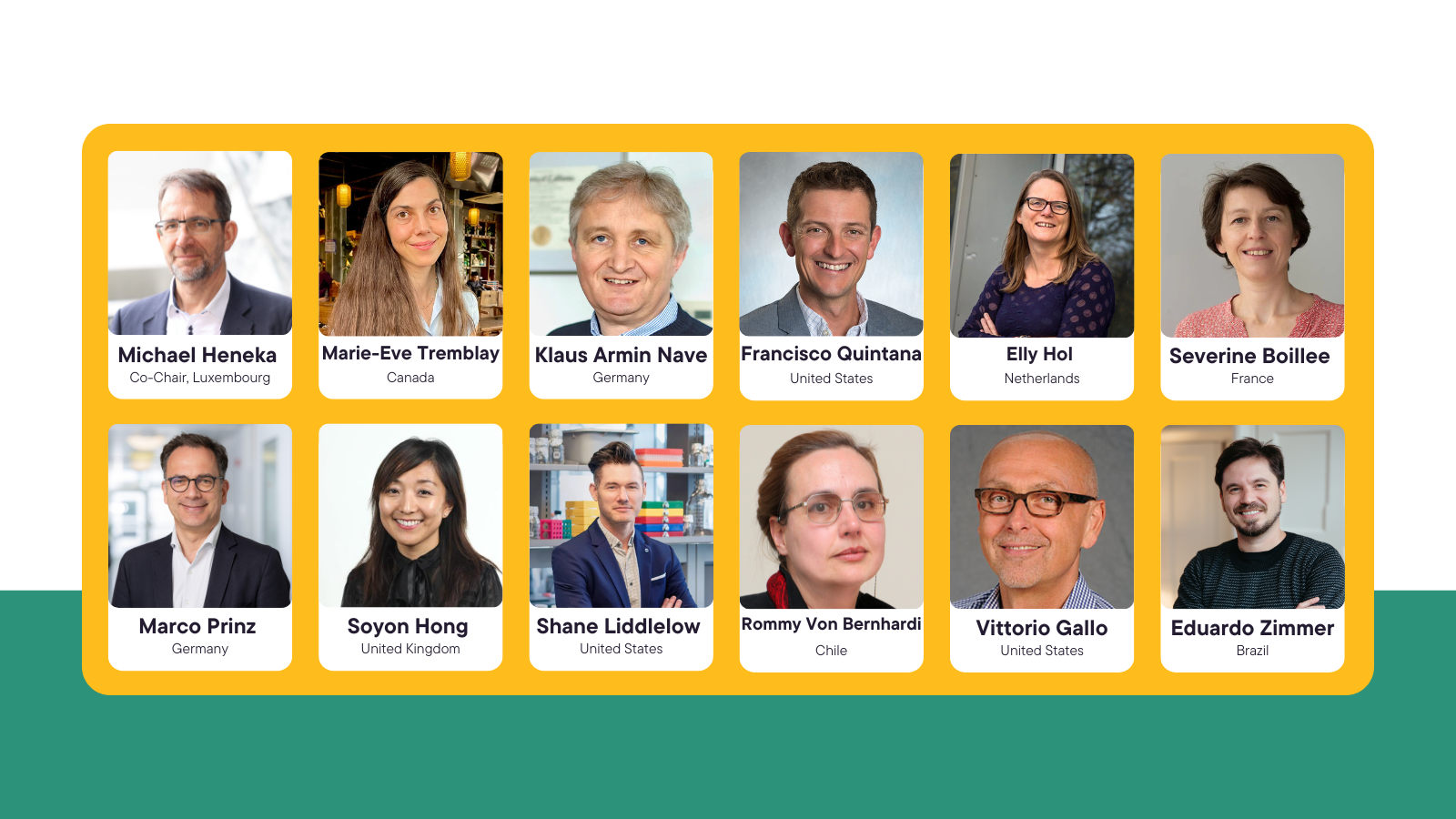 - Michael Heneka (Co-Chair, Topic: Glial–neuronal interactions) – Director, Luxembourg Centre for Systems Biomedicine, Luxembourg